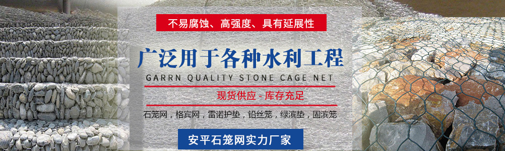 本公司主要生產:石籠網格賓網、重型六角網、鍍高爾凡格賓擋墻、雷諾護墊綠濱墊固濱籠、耐特籠、鉛絲石籠、格賓石籠、電焊石籠網、鍍鋅石籠網、河道石籠網、包塑石籠網、勾花網、高爾凡石籠網、三擰石籠網、五擰石籠網等,可用于保護和支持河道、海堤、山坡、路橋、水庫及其他土木工程, 是防洪固堤工程的上好材料。以可靠的質量,滿意的售后服務深受新老客戶的好評。